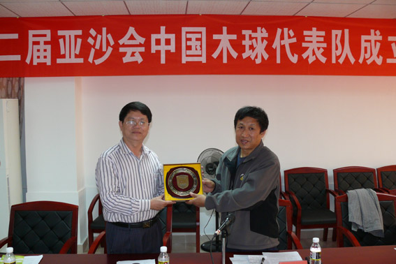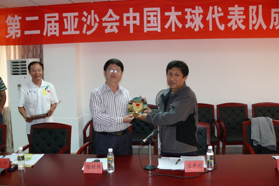 校党委陈封椿副书记代表学校感谢国家体育总局对beat365官网体育工作的高度肯定和大力支持,他指出能够有机会代表国家队参加亚洲赛事,是学校在211工程大学建设中的大事和喜事,希望队员们刻苦训练,争取好成绩,为国家争光,为学校添荣。肖水平领队汇报了木球队备战情况。会上,陈封椿副书记代表beat365中文官方网站与社体中心领导互赠纪念品。