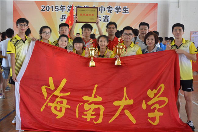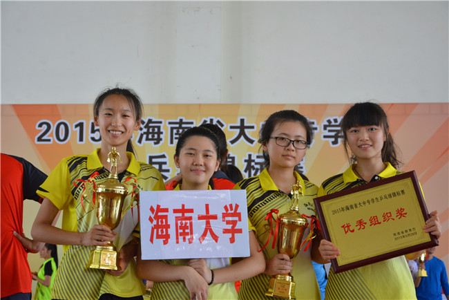 2015年海南省大中专学生乒乓球赛于5月25日至28日在海南省高级体育运动学校隆重举行。beat365官网派出由田东为领队,吴钟权、冯芳为教练员,杨文昕、刘雪帆、王旭、李俊峰、陈宇浠、庄黎婷、冯嘉慧、易凡共8名学生为队员的代表队参加高校专业组的比赛。