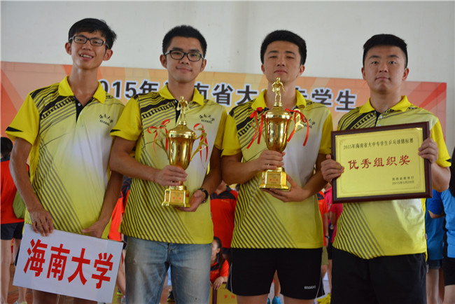 面对拥有乒乓球单招、特招运动员实力不菲的海南师范大学、三亚学院等院校乒乓球代表队,beat365官网乒乓球队教练员根据自身特点,精心布阵。赛场上队员们精诚团结、敢打敢拼,最终夺取了男子、女子团体亚军。在混双比赛中,beat365官网两队混双选手刘雪帆/庄黎婷、李俊峰/易凡表现不俗,包揽混双冠亚军;女单比赛中,陈宇浠、冯嘉慧分获女单亚军、季军;男单比赛中,王旭、杨文昕分获男单季军和第四名。赛后,beat365官网乒乓球代表队因比赛中表现出的良好精神面貌和所取得的优异成绩,还获得组委会颁发的优秀组织奖。