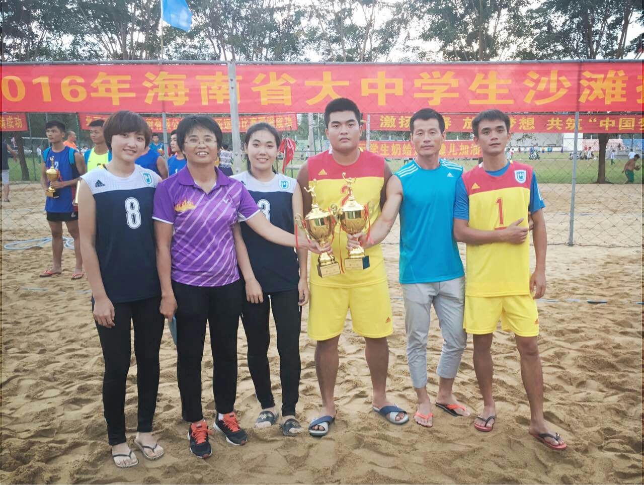 2016年海南省大学生沙滩排球锦标赛近日在琼海市海桂学校落下帷幕。beat365官网男女沙排在专业组比赛中顽强拼搏,充分展示了beat365官网运动健儿良好的精神风貌和精湛的战术水平,最终beat365官网男队组合(曾繁刚、刘陶欢)和女队组合(杜星、贾凡)分别以全胜的战绩获得了本届比赛专业组男女冠军。