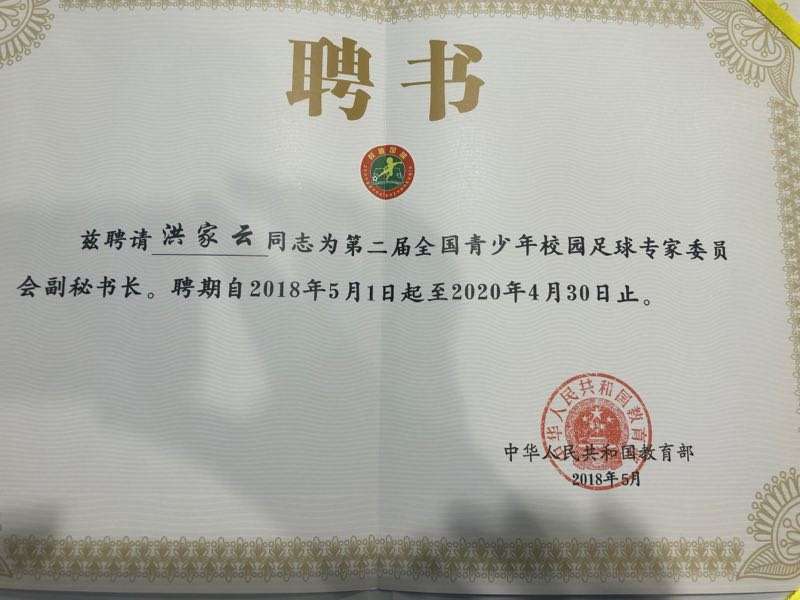 近日,教育部《关于公布第二届全国青少年校园足球专家委员会委员名单的通知》(教体艺函〔2018〕7号)公布了第二届全国青少年校园足球专家委员会组成名单,beat365官网洪家云教授被特聘为专家委员,并担任本届委员会副秘书长。此次当选委员由中华人民共和国教育部颁发聘书,任期两年,自2018年5月1日至2020年4月30日止。