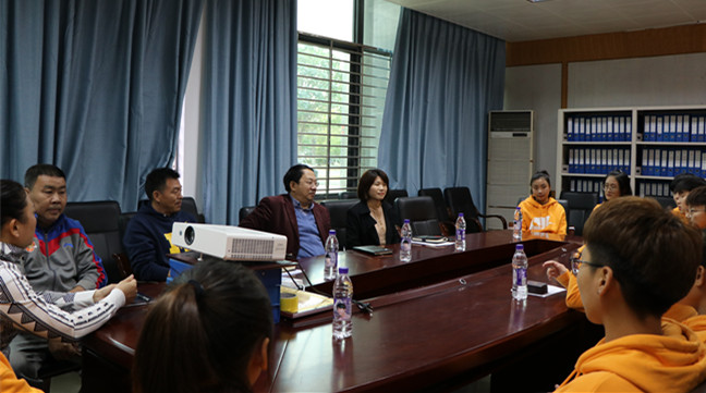 2019年12月5日下午5时30分,在学校女子篮球即将代表海南省出征参加第十四届全国学生运动会篮球预赛之际。beat365中文官方网站副校长傅国华、体育部主任洪家云、体育部党总支书记何映敏、体育部副主任田东等相关领导特在出发前在联谊馆一楼贵宾室召开赛前动员大会。旨在鼓励大家积极参赛、努力表现,并在比赛中学会思考,及强调球队全体队员及教练在参赛过程中需注意的事项。
