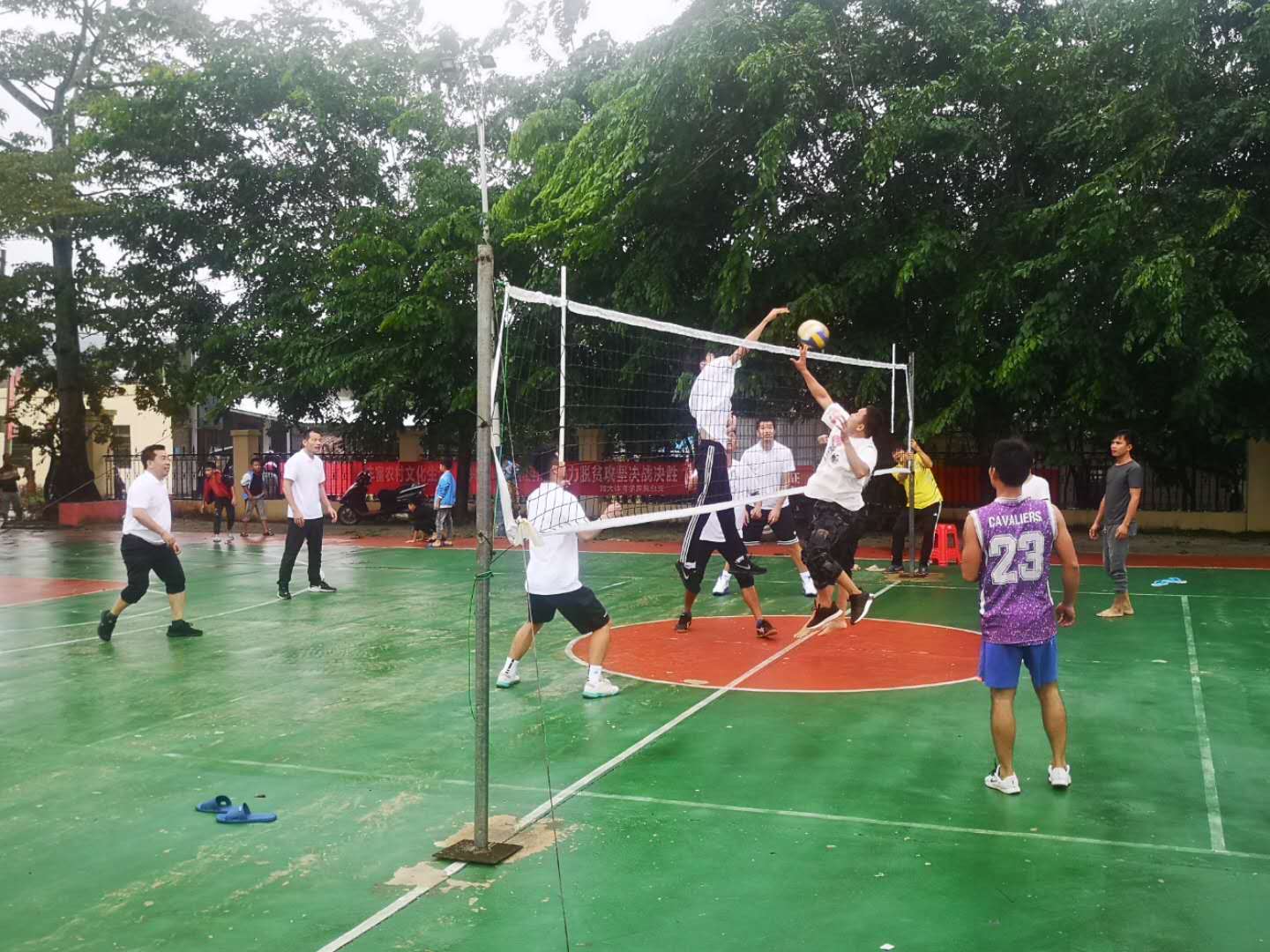 今年10月17日是我国第七个“国家扶贫日”,为了保持“不忘初心、牢记使命”主题教育常态化,加强党组织建设,提高基层党组织的凝聚力和战斗力,同时助力学校定点扶贫单位脱贫攻坚决战决胜,全院二十多名党员赴beat365中文官方网站定点帮扶的东方市大田镇乐妹村开展“不忘初心、牢记使命”主题教育暨体育文化下乡慰问活动。本次活动,由beat365中文官方网站党总支书记陈卫东、院长洪家云带队,由beat365中文官方网站党员教师组成的排球队与乐妹村排球队进行了一场别开生面的排球比赛,以球会友,以赛促融,无论是场上的队员还是场下的观众都通过比赛加深了彼此的了解,增进了彼此的感情,同时,学院为乐妹村村民及学生们送去了体育器材设施和慰问礼品,以实际行动助力乐妹村脱贫攻坚战取得全面胜利。