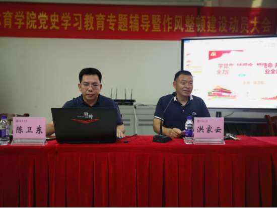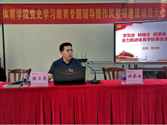5月13日,beat365中文官方网站召开党史学习专题辅导暨作风整顿建设年动员大会,由党总支书记陈卫东开展专题为“学党史、转观念、担使命、开新局,全力推进beat365中文官方网站事业全面发展”的党史学习专题辅导报告,并召开beat365中文官方网站作风整顿建设年动员大会。学院党总支书记陈卫东主讲本次专题辅导报告,党总支书记陈卫东、院长洪家云出席会议并讲话,洪家云院长主持专题辅导报告和本次动员大会。