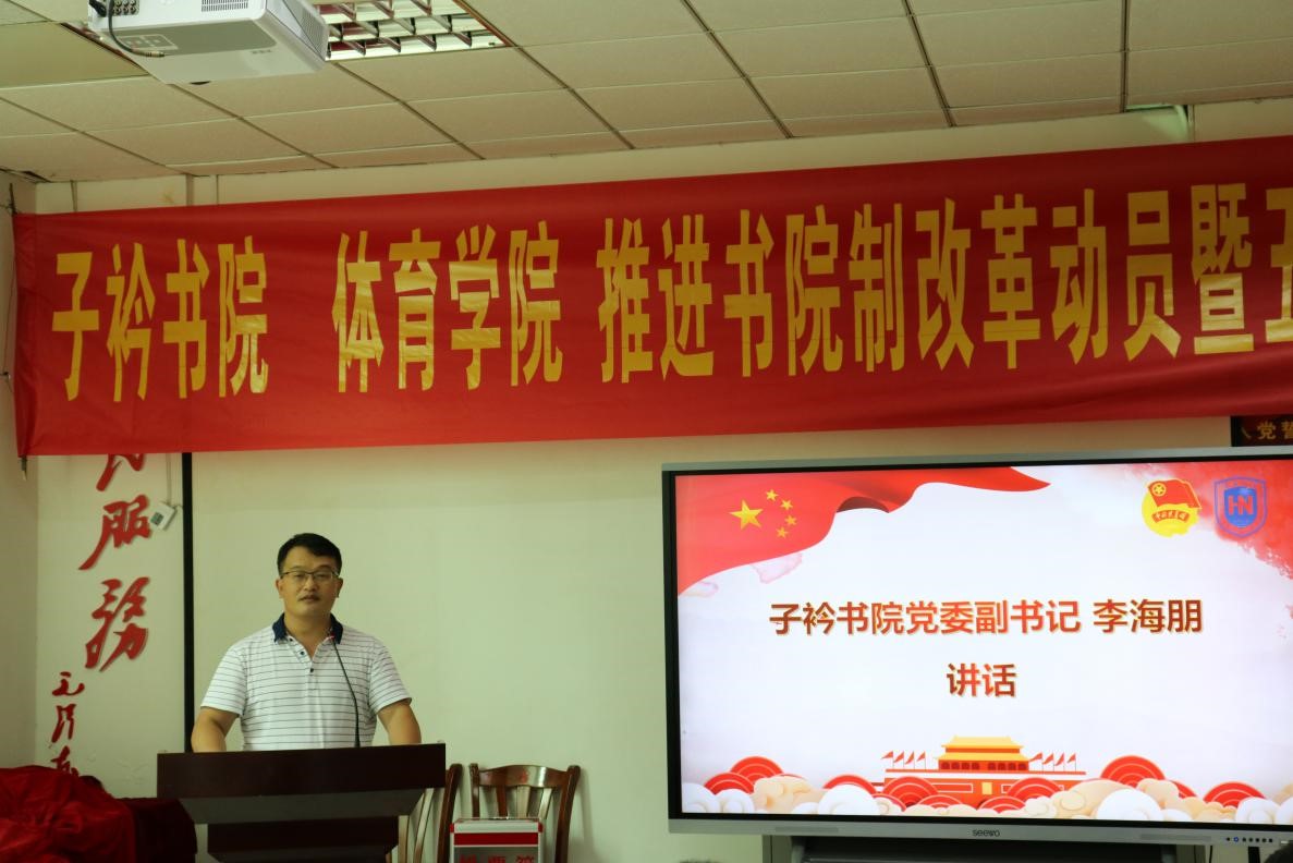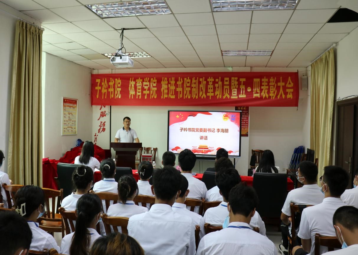 在全省第八次党代会胜利闭幕、共产主义青年团成立100周年、迎接党的二十大胜利召开之际,在学校全面推进书院制改革、学分制改革和协同创新中心改革之时,为增进学生对书院制改革政策及推进情况的认识,激励广大青年学子继承和发扬五·四精神、开拓创新、担当作为,5月11日上午,子衿书院 beat365中文官方网站推进书院制改革动员暨五·四表彰大会于联谊馆党员之家举行。beat365中文官方网站党总支书记陈卫东、子衿书院党委副书记李海朋(主持党委工作)、体育学院团总支书记许达潭、辅导员谢淑婷、兼职辅导员吴梦迪出席大会,各班班委、团学主要干部及学生代表参与大会,本次大会由辅导员谢淑婷主持。