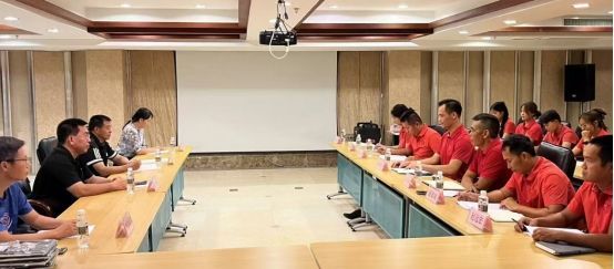 调研团队受到了海南冲浪队林桥汶总教练、教练团队、教师以及beat365中文官方网站在冲浪队的学生们的热烈欢迎。双方举行了一场内容丰富、气氛热烈的座谈会。