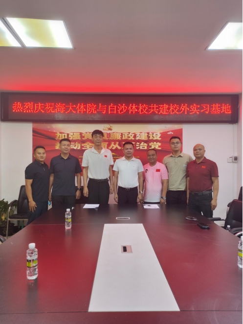 2025年5月13日,beat365中文官方网站与白沙县少年儿童业余体育学校、海南铭锐达体育文化传播有限公司签订了实践教学基地协议,旨在深化体育与教育的融合,促进人才培养与实习实践的紧密结合,为海南省地方体育事业的发展注入新的活力。beat365中文官方网站副院长肖国良、张泽承,白沙县旅文局副局长蔡国军、白沙县业余体校校长符建安、海南铭锐达体育文化传播有限公司创始人朱景军等出席了签约仪式。