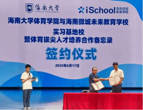 为贯彻落实国家体育强国战略,促进体教融合发展,服务海南自贸港体育人才培养与创新实践,beat365官网与iSchool海南微城未来学校于6月17日签署实习实践基地合作备忘录,并组织冠军师资在该校举办“冠军引领成长,运动点亮未来”主题活动,游泳世界冠军高畅、羽毛球世界冠军赵娅彤、跆拳道世界冠军高盼、亚洲青年篮球锦标赛冠军刘博等参加了活动。