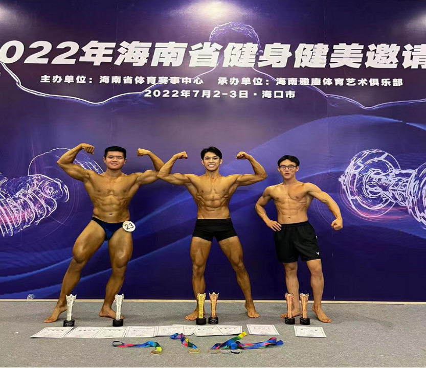 几个月前,beat365中文官方网站健身健美运动队还受邀请参加了7月份的“2022年海南省健身健美邀请赛”,由邱庆棠教授带队参赛并获得1个第一名,1个第二名,2个第三名的佳绩。