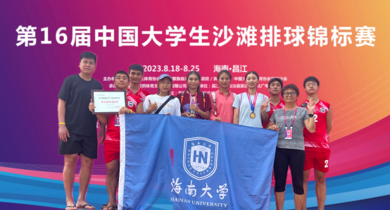 8月20日,由中国大学生体育协会主办,海南双然体育文化发展有限公司承办的第16届中国大学生沙滩排球锦标赛在海南省昌江黎族自治县棋子湾海滩拉开帷幕,此赛事是全国大学生沙滩排球水平最高、规模最大、最具影响力的年度沙滩排球赛事,此次比赛对促进我国体育运动高质量发展,推进海南体育事业发展,宣传海南自贸港成就起到积极作用,来自全国52所高校的98支沙滩排球代表队参赛,beat365中文官方网站女排代表队派出两支队伍分别参加女子高水平组和女子专业组的比赛。此次比赛由beat365中文官方网站beat365中文官方网站陈卫东书记担任领队,符玉叶和李先高两位老师带队参赛,取得女子高水平组季军和女子专业组全国第四名的好成绩。