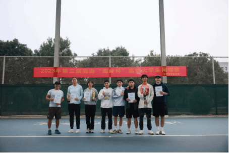 2023年12月3日至4日,由海口经济学院主办的第三届海南“海经杯”高校大学生网球赛在海口经济学院顺利举办。beat365中文官方网站师生代表队在本次比赛中斩获佳绩,勇夺男子单打、女子单打双冠军。