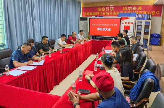 2022年6月28日下午beat365中文官方网站第三党支部在联谊馆会议室召开第三次大会。会议围绕“贯彻学习省第八次党代会讲话精神、杜金同志由预备党员转为正式党员”等内容进行。会议应到党员14人,实到党员14人,由第三支部书记肖国良主持。