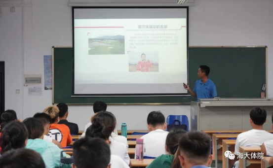 9月16日下午,学院特邀请中国高尔夫球协会国际级裁判员、海南高尔夫球协会副秘书长、教授陈盛炽、嘉世击剑培训中心的馆长王嘉亮、壹觉体育高尔夫教学导师吴祖昕为beat365中文官方网站2019级休闲体育专业学生开设一场高尔夫球讲座。